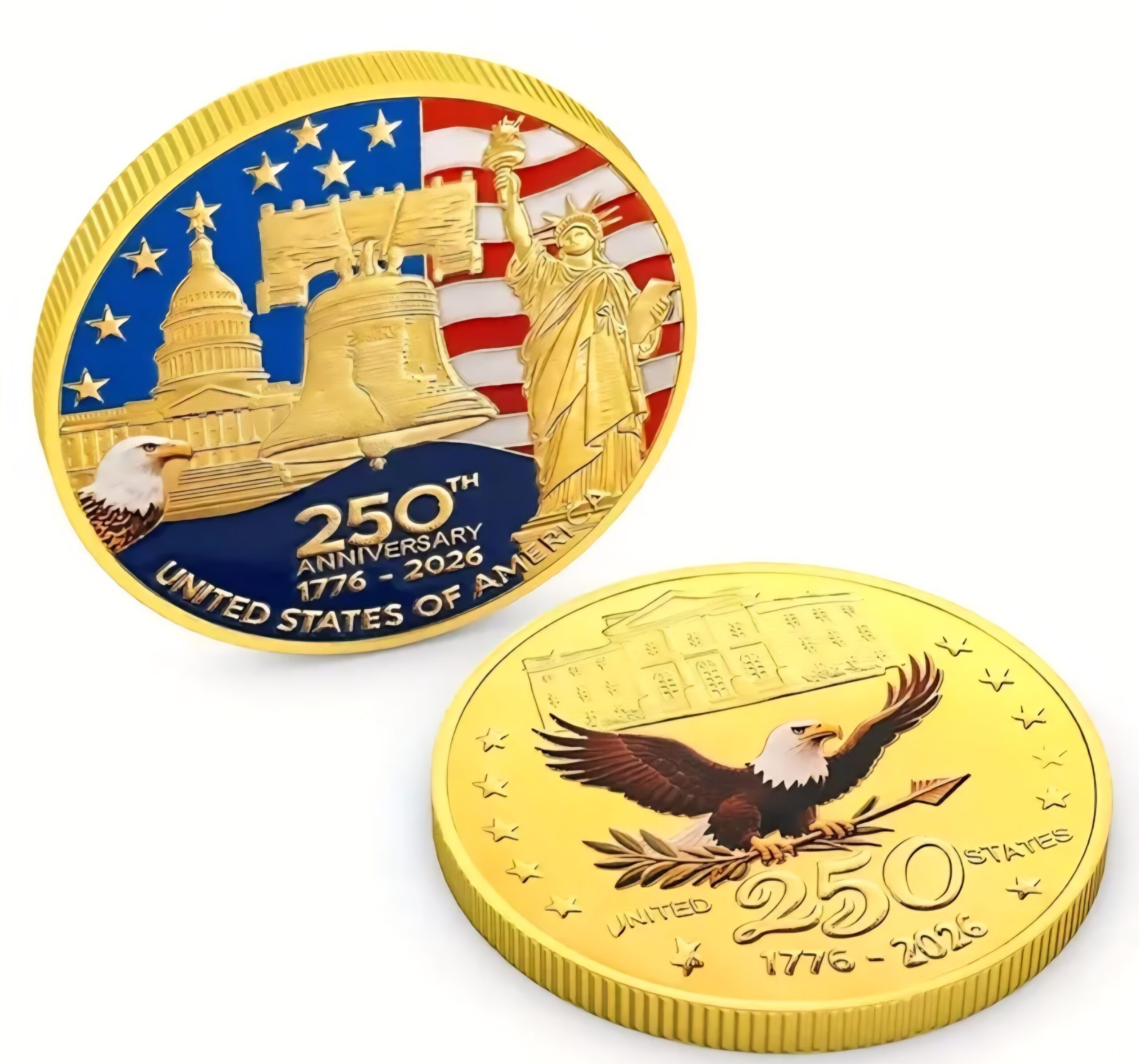 Celebrate the 250th Birthday of the BEST country in the world. We have obtained a limited supply of Celebration Coins to share with others to celebrate this amazing milestone in American History. These are golden cladded Coins with beautiful painted portions.