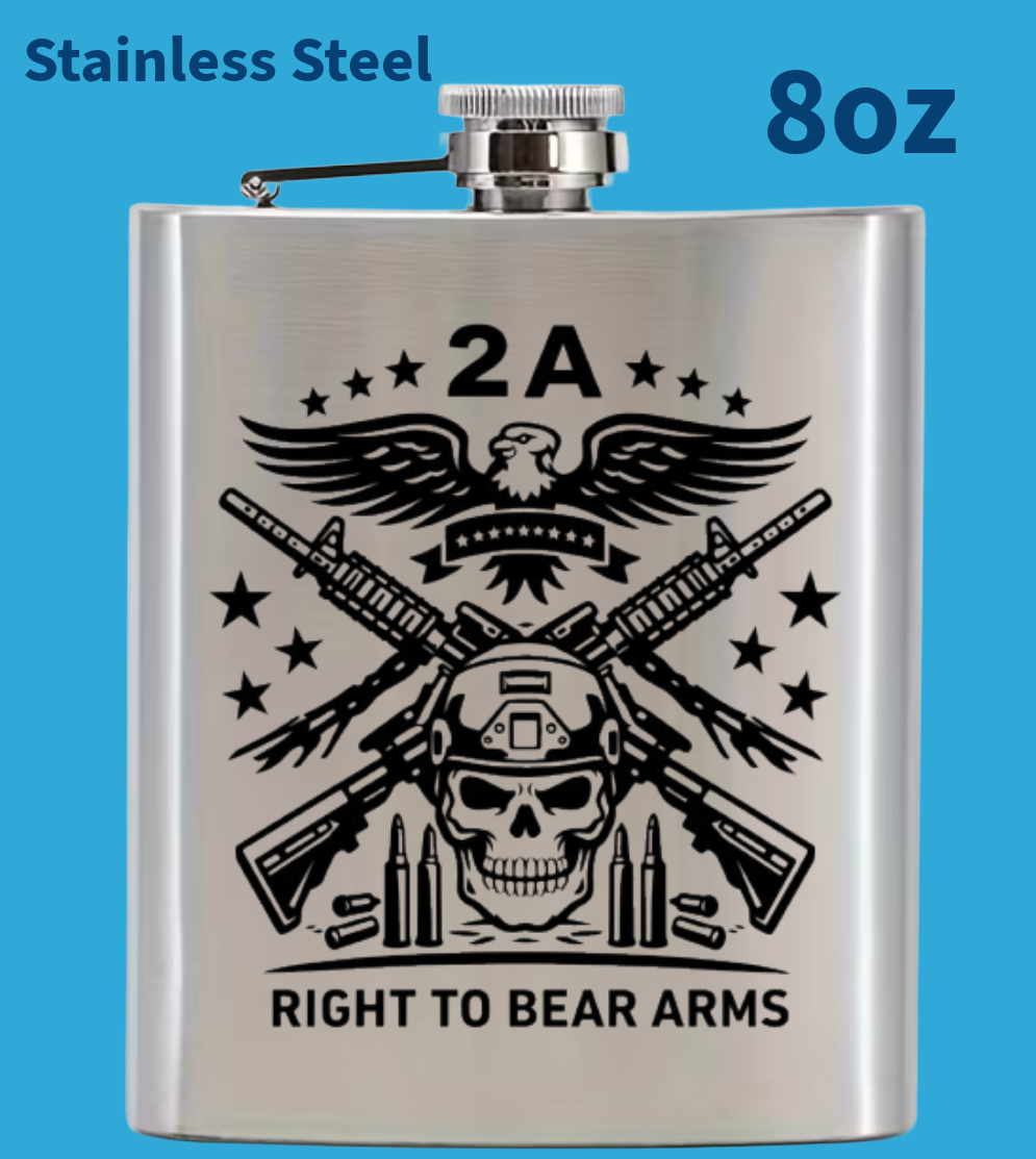 Get your 2nd Amendment 8oz Stainless Steel Flask with fill funnel.
