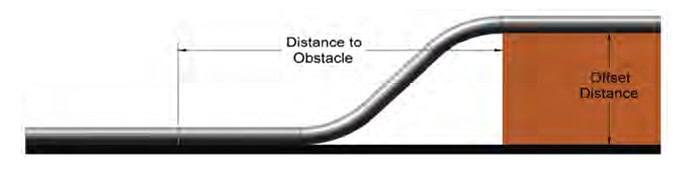 Example: As an example, the offset distance of an obstacle is 2” and the distance to obstacle’s center point is 20”. The installation allows for a 45° saddle bend.