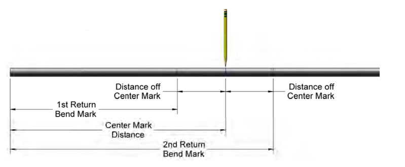 (Center Mark) – (Distance off Center Mark) = 1st Return Bend Mark: Example: (20-3/8”) – 5” = 15-3/8”